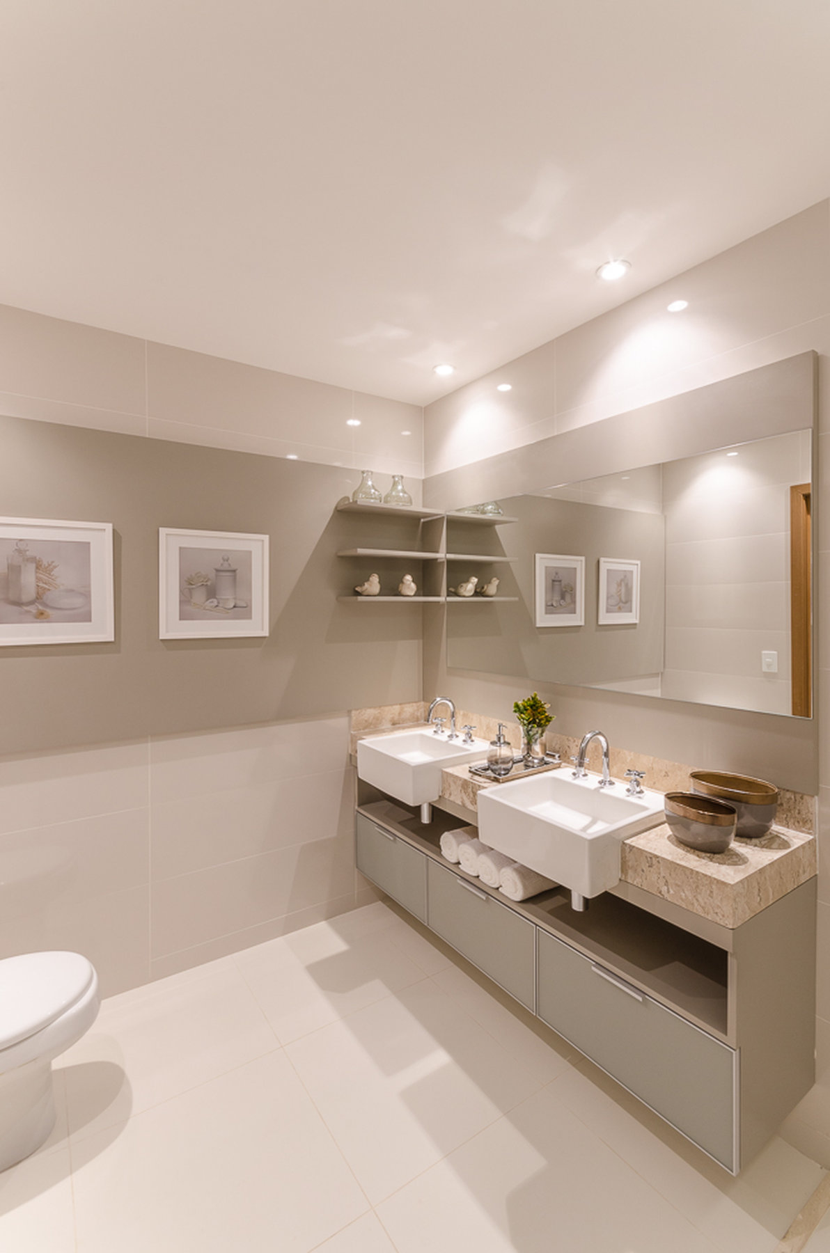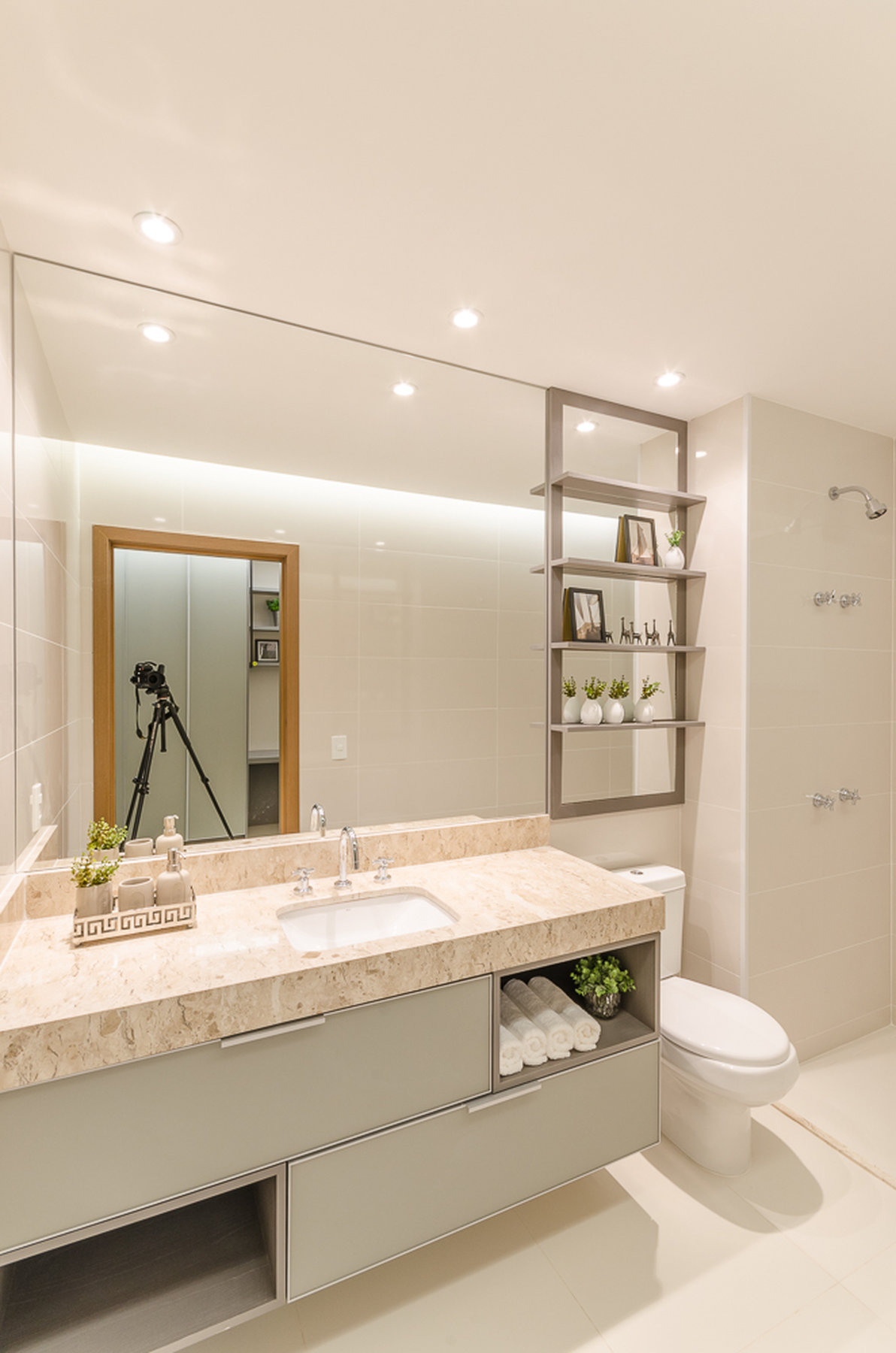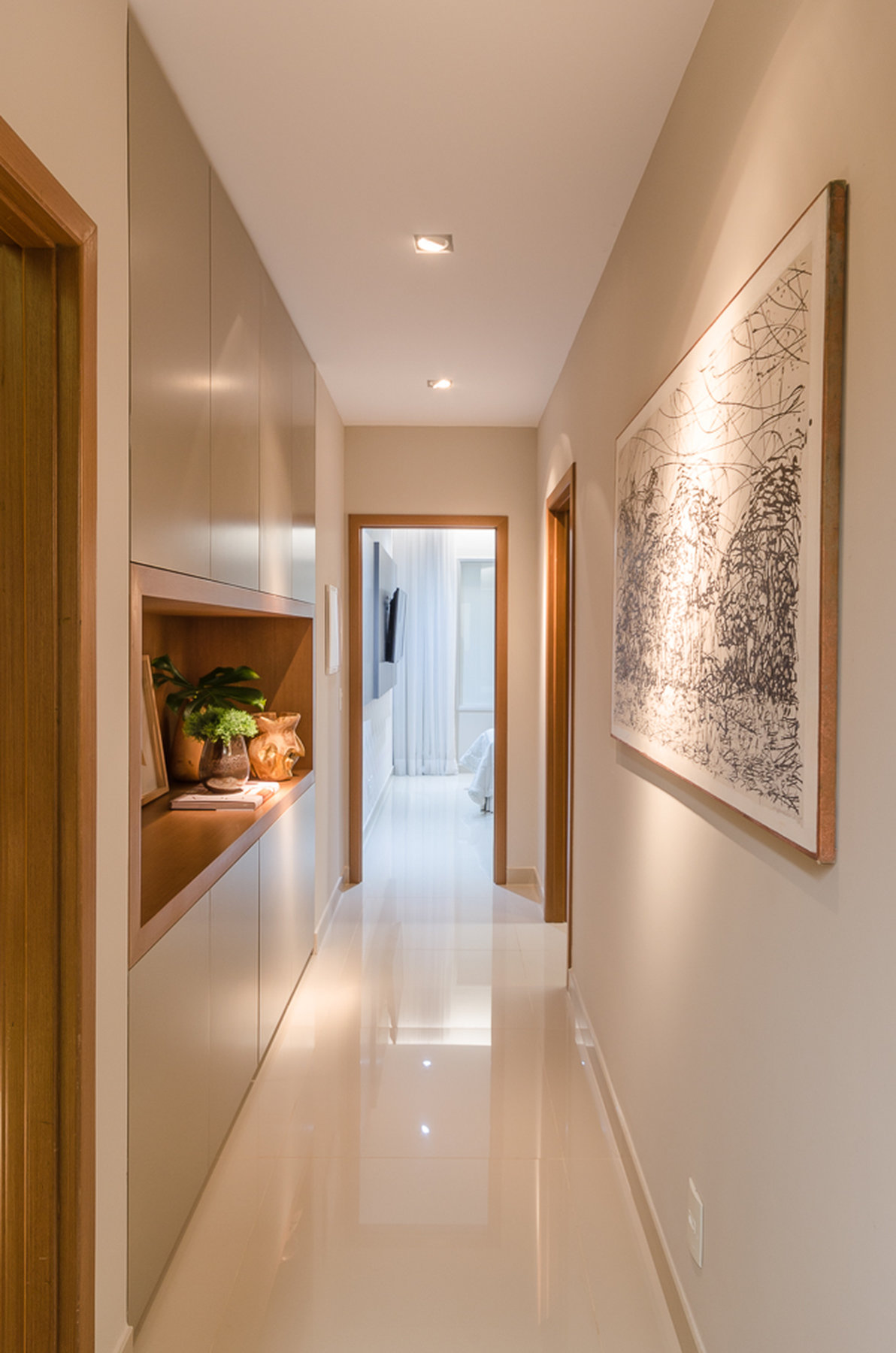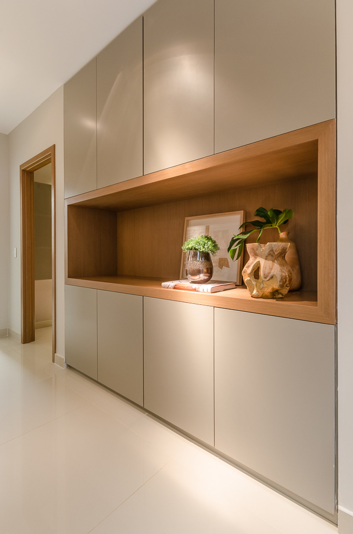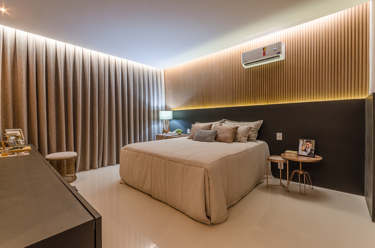 No Aventino, Sandra traduz modernidade e aconchego em um projeto que valoriza materiais nobres e soluções inteligentes de integração. A marcenaria em madeira aquece o ambiente, enquanto o espelho amplia a sensação de espaço, refletindo a luz e reforçando o design elegante.