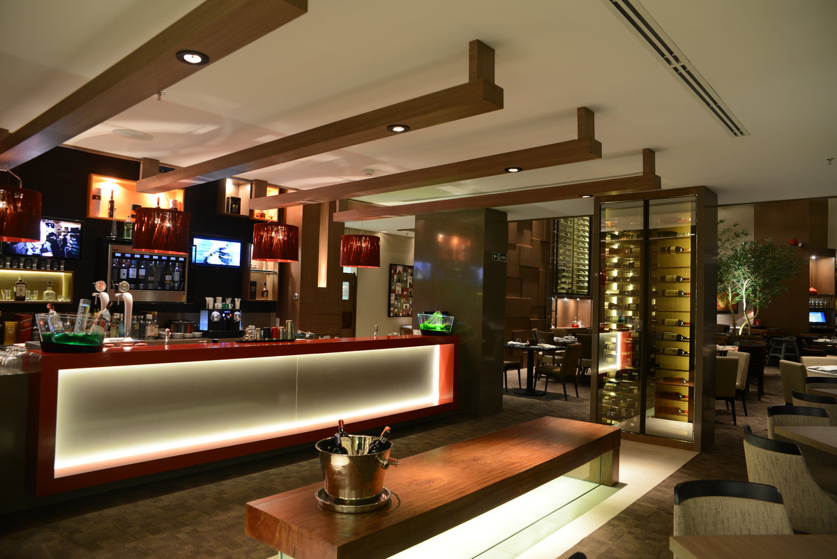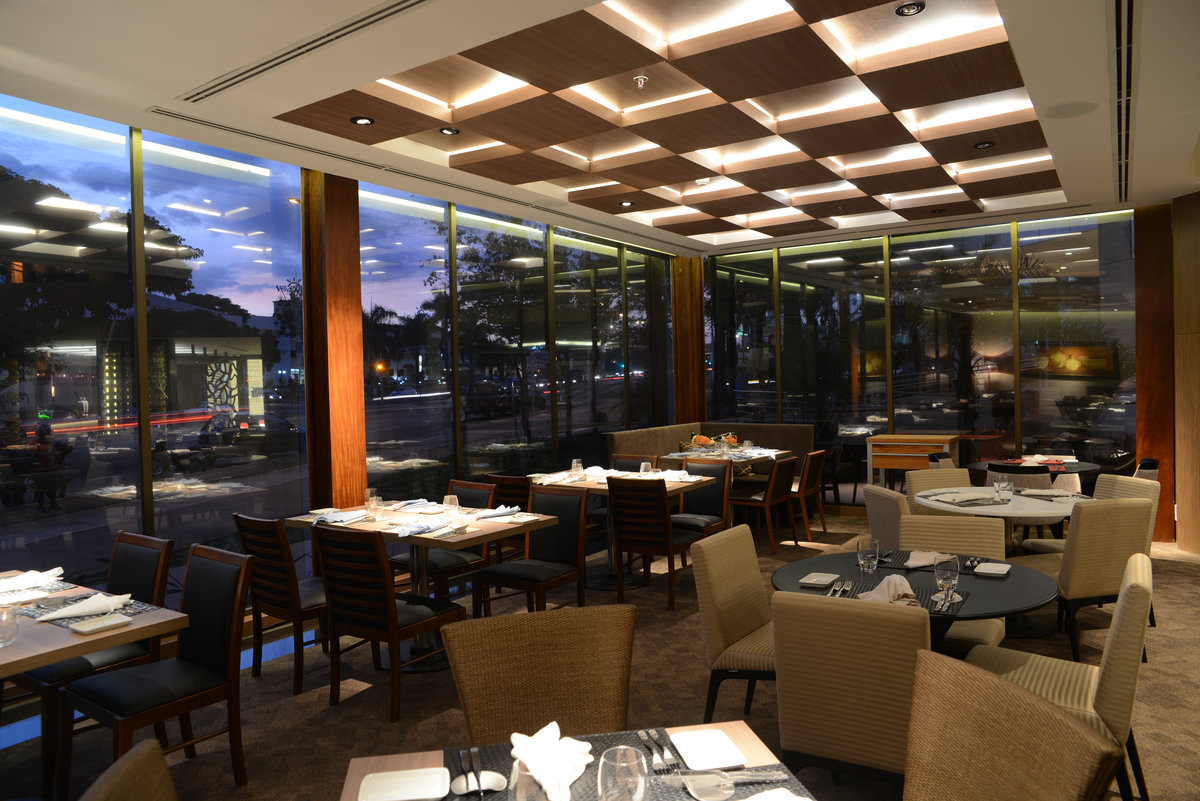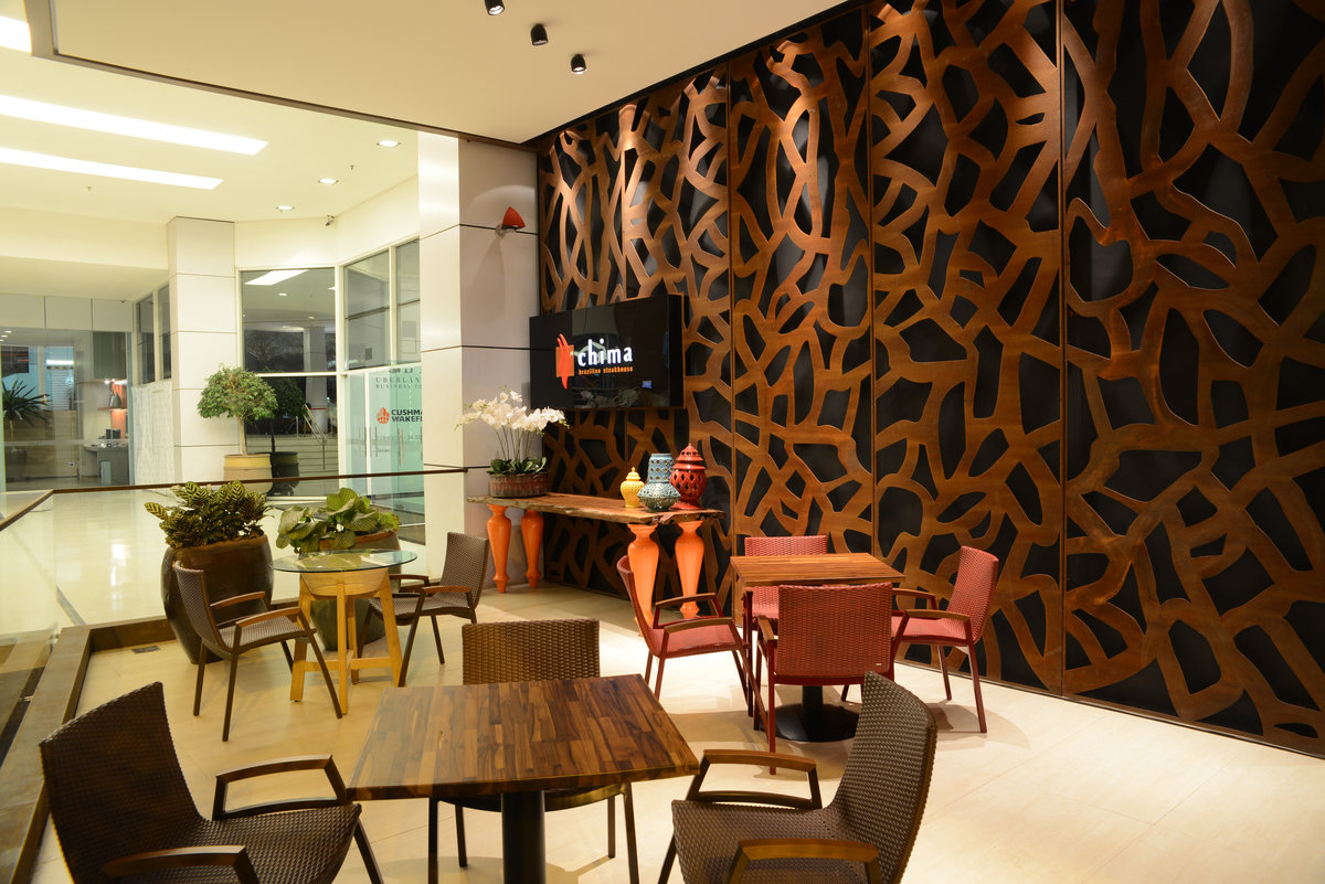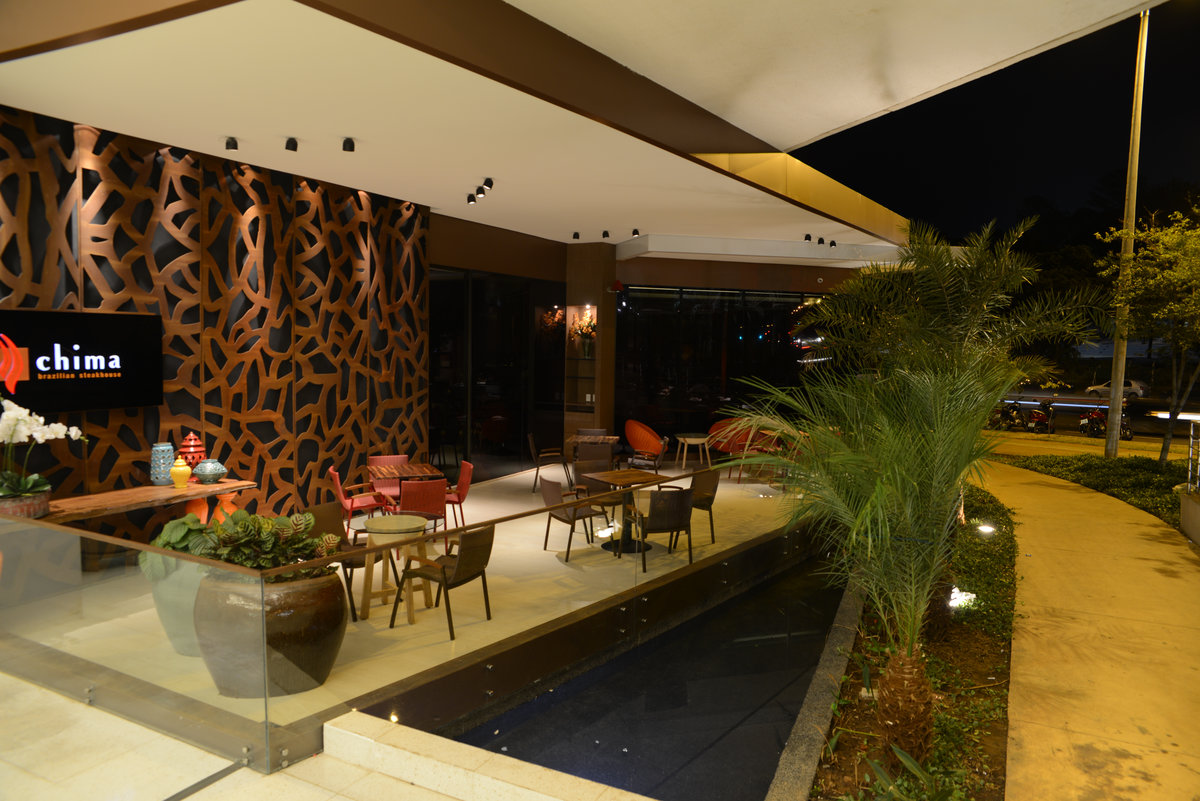 O projeto de interiores deste restaurante destaca-se pela elegância contemporânea e pelo uso inteligente de materiais e elementos naturais para criar um ambiente acolhedor e sofisticado. O espaço explora uma paleta de tons terrosos, com destaque para o uso extensivo da madeira, presente em painéis, mobiliário e acabamentos, o que confere calor e conforto visual ao ambiente.