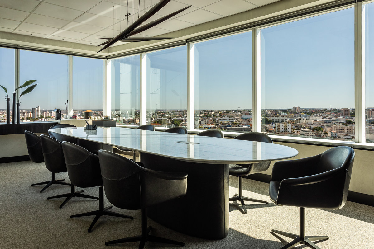 Mais do que mobiliário funcional, a mesa se transforma em ponto central da sala, valorizando o skyline urbano que se vê pelas amplas janelas ao redor. Um verdadeiro símbolo de estilo, personalidade e excelência, traduzido em forma, matéria e propósito.