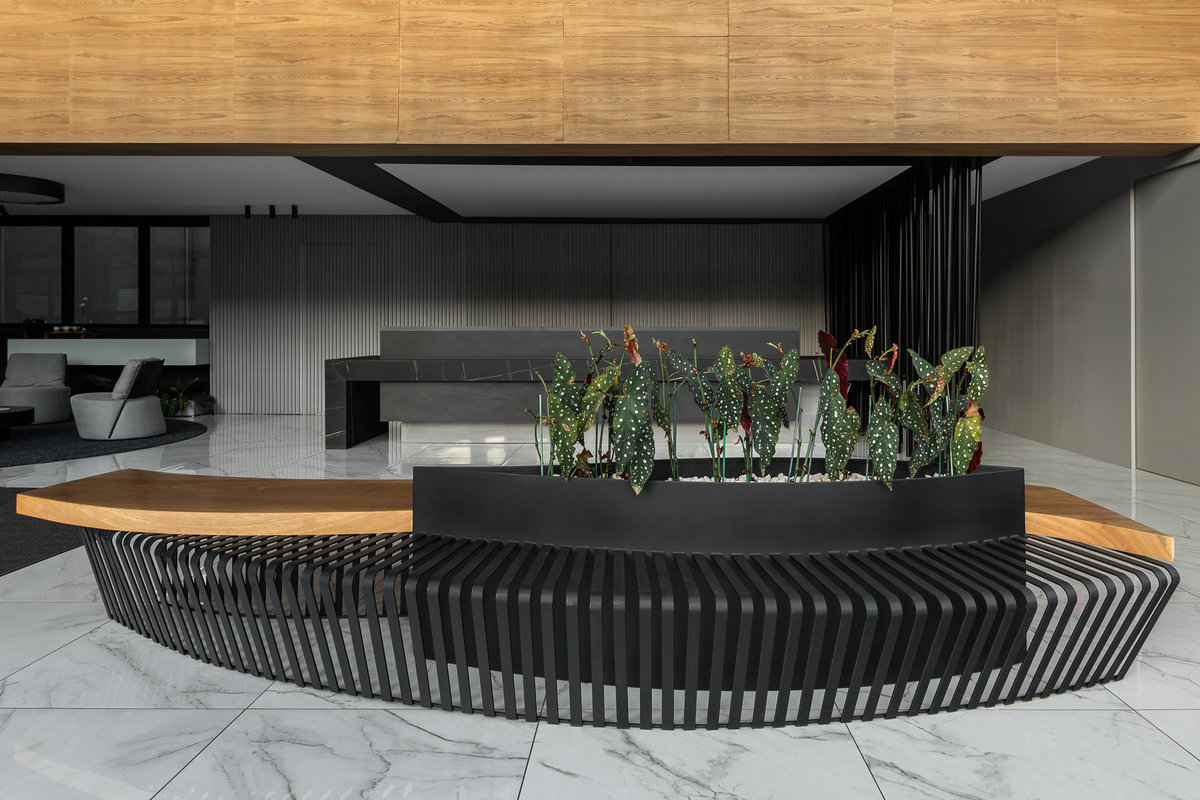 A recepção do escritório SEVEN foi projetada para causar uma primeira impressão marcante, alinhando sofisticação, conforto e personalidade. O ambiente valoriza o acolhimento com uma estética contemporânea e elegante, refletindo uma identidade forte e carismática.