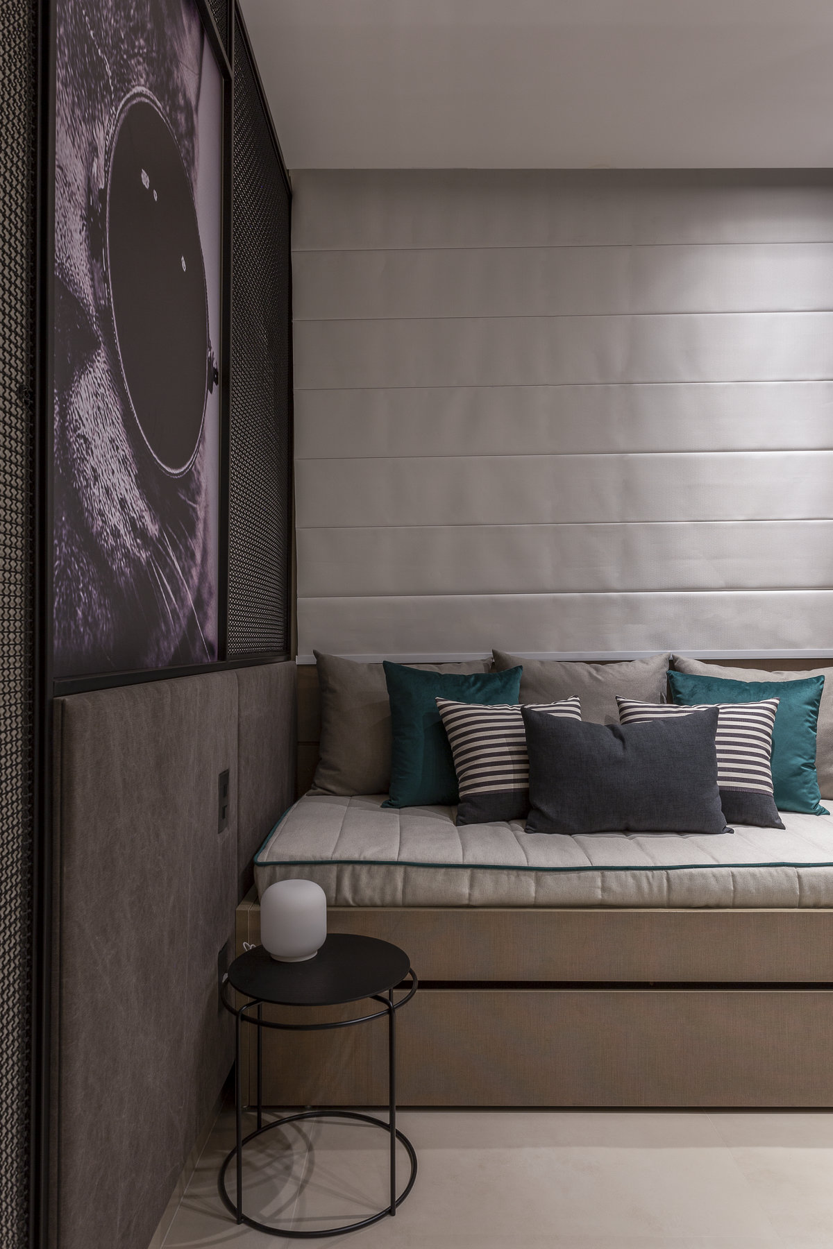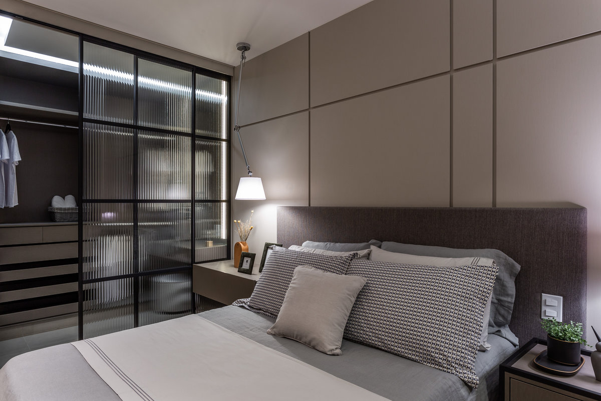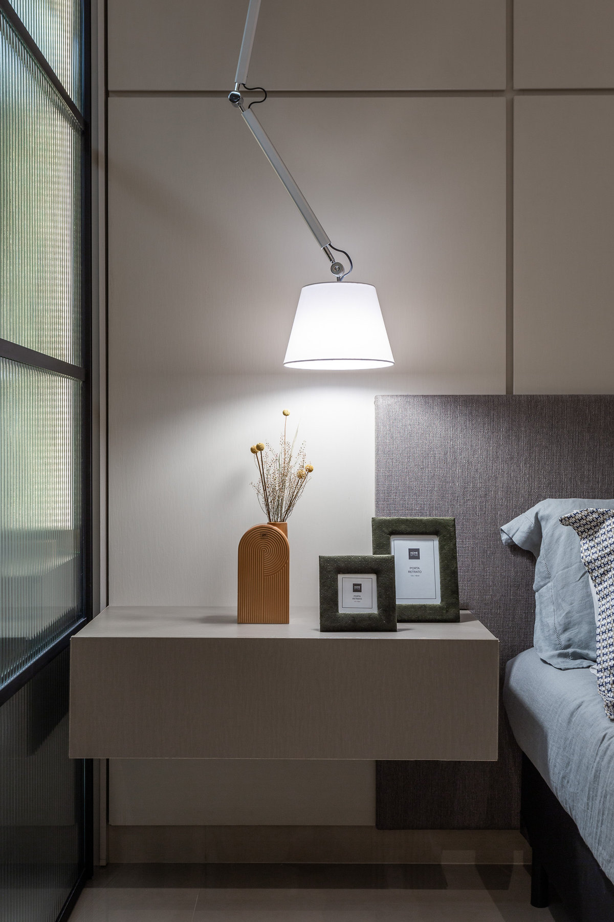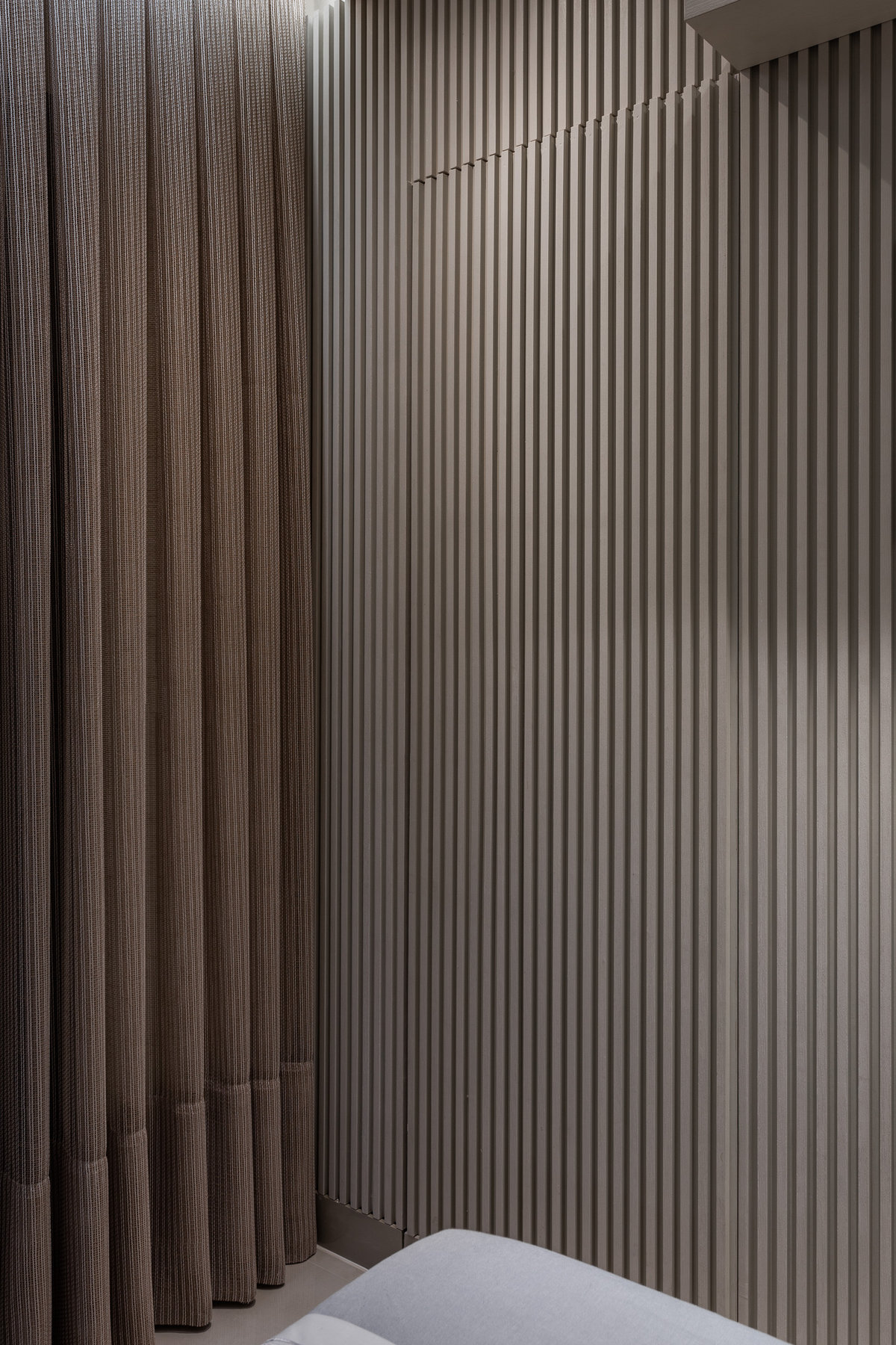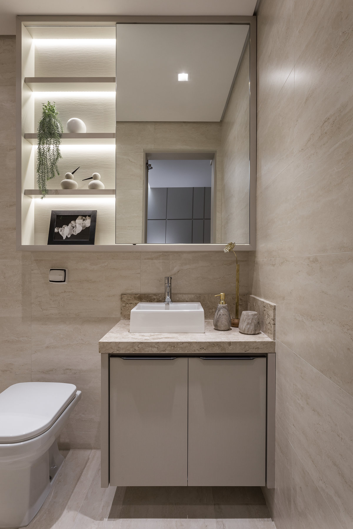 Painéis ripados, cortinas embutidas e o uso inteligente da marcenaria reforçam o cuidado com cada detalhe, compondo um espaço elegante, prático e visualmente aconchegante — reflexo do olhar sensível e sofisticado de Sandra Oliveira.